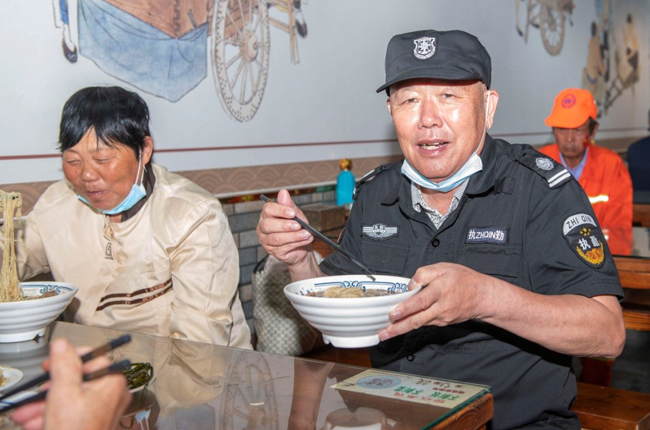 一碗“國慶面”,一份愛國情。當一碗碗熱氣騰騰、香氣撲鼻的面條送到環(huán)衛(wèi)工人、快遞小哥等堅守在一線崗位上的工作人員手中,大家接過面條,享用著寓意美好的“國慶面”,每個人的臉上都洋溢著幸福和快樂的笑容。大家用最樸素最平常的食物,表達了對祖國母親生日快樂的真摯情感。