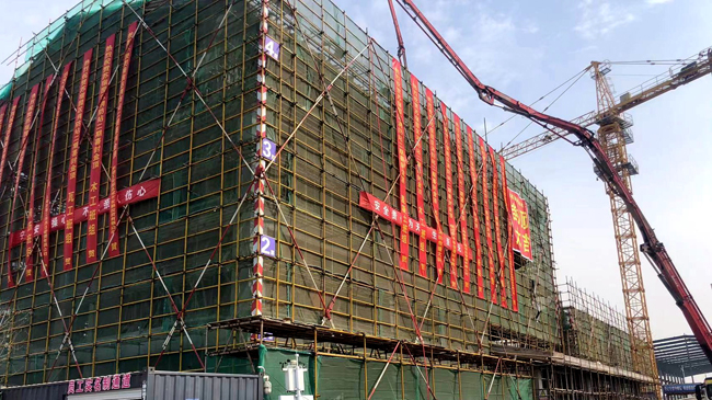項(xiàng)目于2022年12月8日開工建設(shè),12月25日完成樁基施工。為搶回疫情對(duì)工期的影響,城發(fā)公司組織人員在春節(jié)假期后第2天就全面復(fù)工,同時(shí)主體結(jié)構(gòu)始終保持7天一層的施工進(jìn)度,從而封頂日期比原計(jì)劃提前15天。