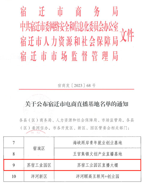 近日,由宿遷市商務(wù)局組織,各縣區(qū)參與的首批“宿遷市電商直播基地”評(píng)選結(jié)果揭曉,蘇宿電商園直播大棚成功入選首批“宿遷市電商直播基地”。