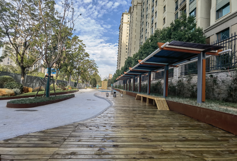 園區(qū)因地制宜,充分利用公共綠地、邊角地等小地塊,在群眾家門口建設(shè)了一批小而精的“口袋公園”,在增加綠化覆蓋率,改善城市環(huán)境的同時,也讓市民的幸福感逐步攀升。