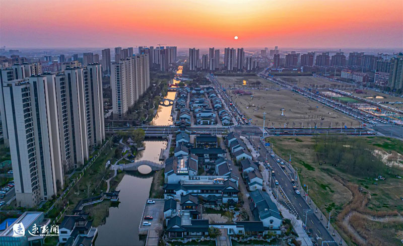 3月31日,蘇州街盛開的櫻花、海棠、玉蘭與蘇式街區(qū)相互映襯,美不勝收。