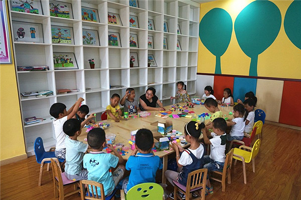 七月份和八月份的每個周六,是社區(qū)興趣班——手工秀上課的日子。每天下午三點鐘小朋友們手提多彩的太空泥,整整齊齊地坐好開始上課。學習中他們可都是一副極其認真的樣子。